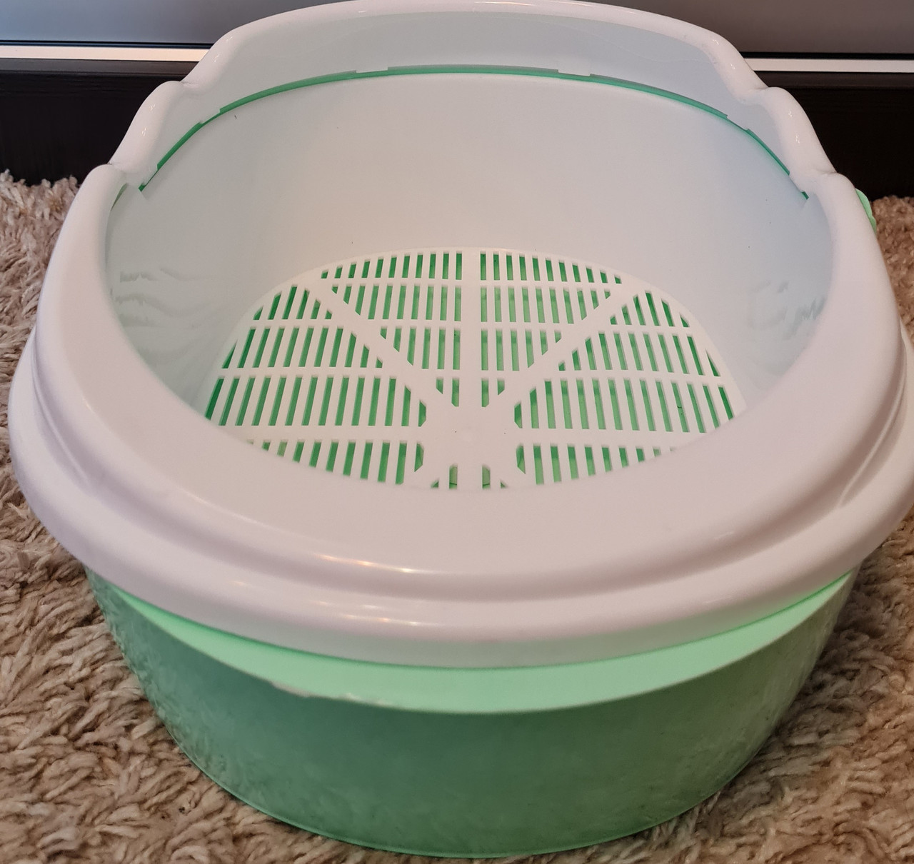 - Рамка і сітка легко знімається з лотка для прибирання туалету.